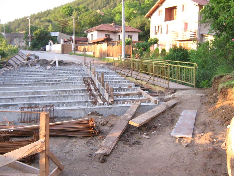 Ремонтират мост в Мърчаево. Иззиданите основи от камък си остават, а железобетонна конструкция се строи отгоре му. Този ремонт реално "отсича" не дотам известния обходен маршрут срещу задръстванията, за който писахме преди тук: Прекият път за София през Мърчаево